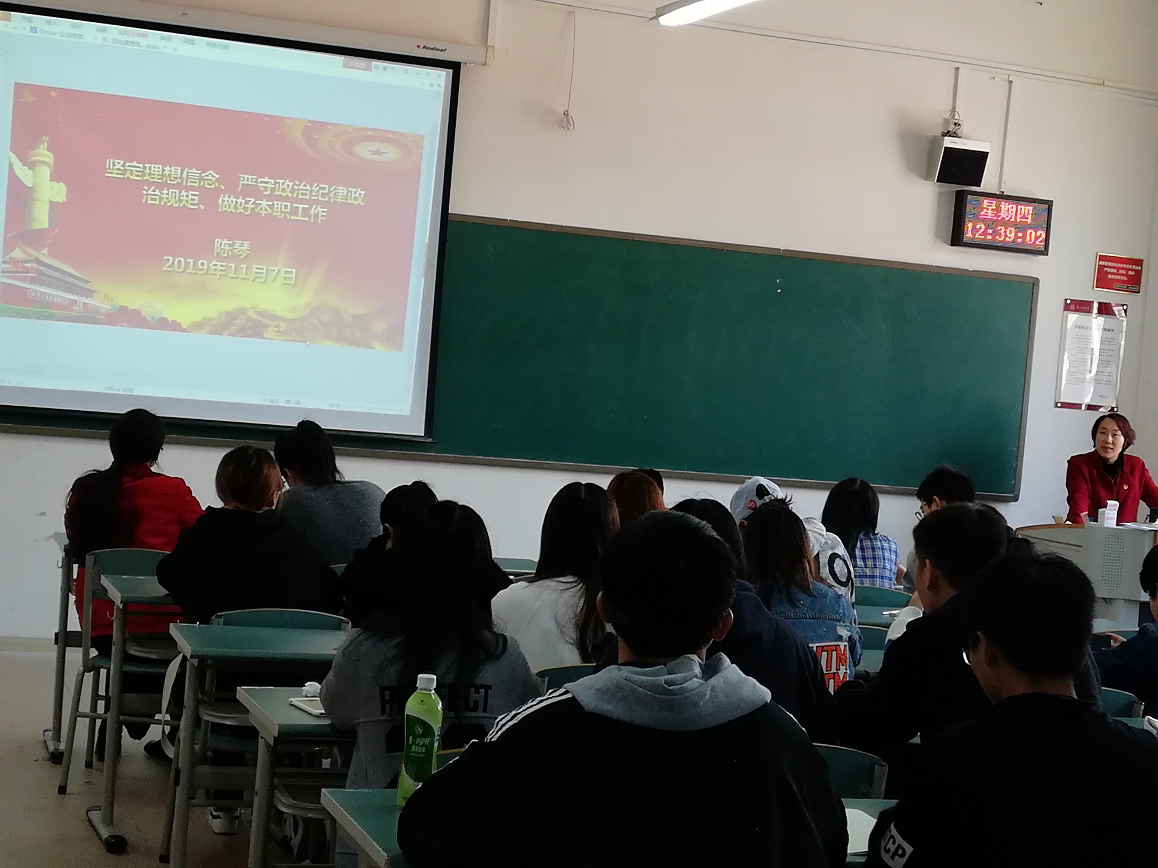 陈琴同志以“坚定理想信念、严守政治纪律政治规矩、做好本职工作”为题,从学习收获、存在问题、下一步整改措施三个方面与大家进行了交流。 参加党课的党员同志们纷纷表示,通过这次党课,更进一步体会到在日常的工作中不断学习的重要性,要时刻用党员的严格标准严格要求自己,坚定理想信念、严守政治纪律政治规矩,做好本职工作事情。