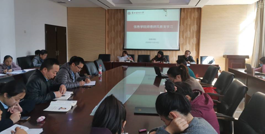会上,组织大家学习了《新时代高校教师职业行为十项准则》《教育部关于高校教师师德失范行为处理的指导意见》《高等学校教师职业道德规范》等文件精神。