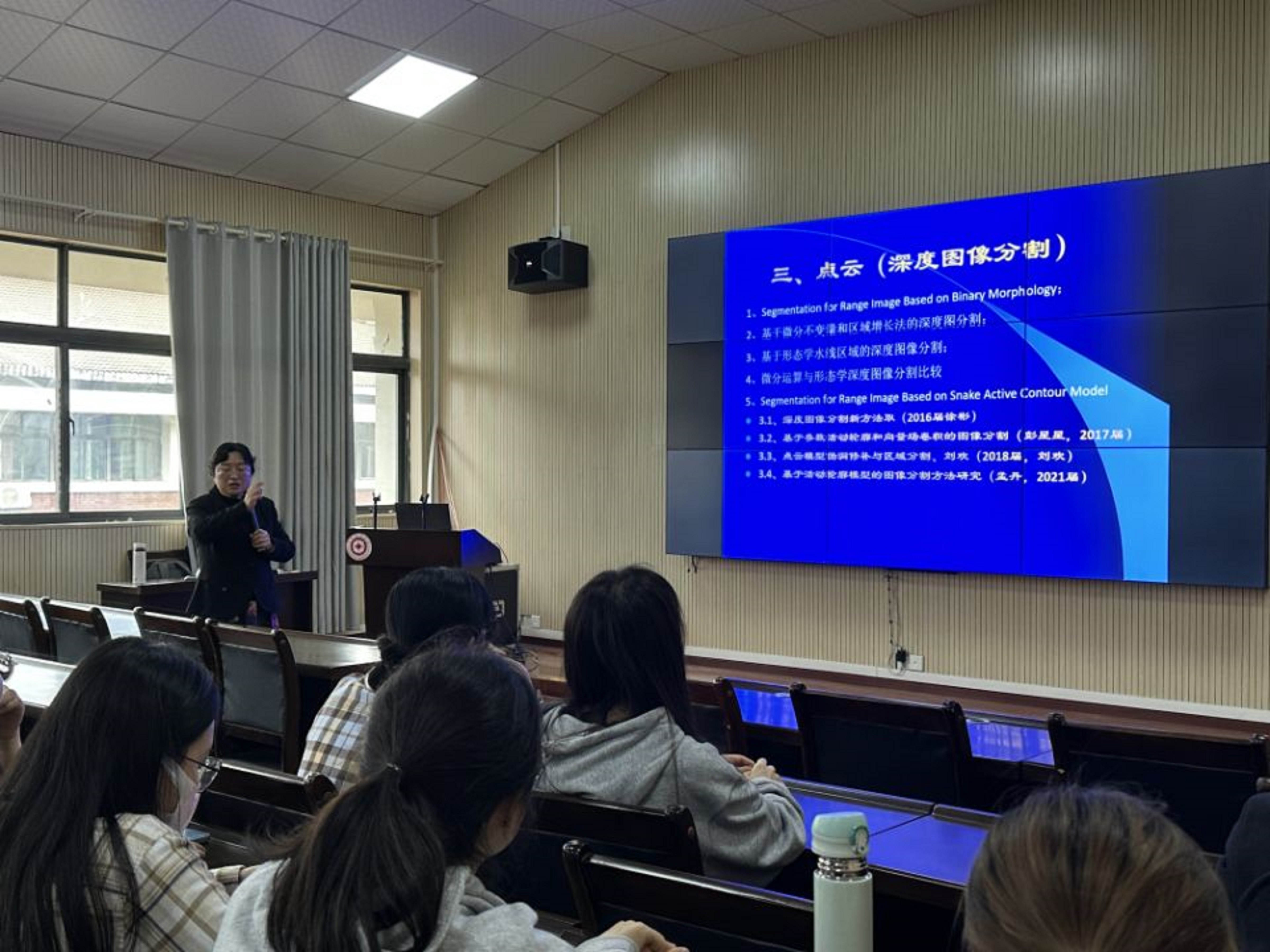 5月12日下午,张梅教授以“复杂曲面物体激光点云3D建模与深度学习分析”为题,为公司师生做了一场学术讲座,拉开了本年度公司系列学术报告会的大幕。本次讲座在志学楼506报告厅举行,由崔鹏副经理主持。公司部分教师、研究生、本科生近100人参加了此次讲座。