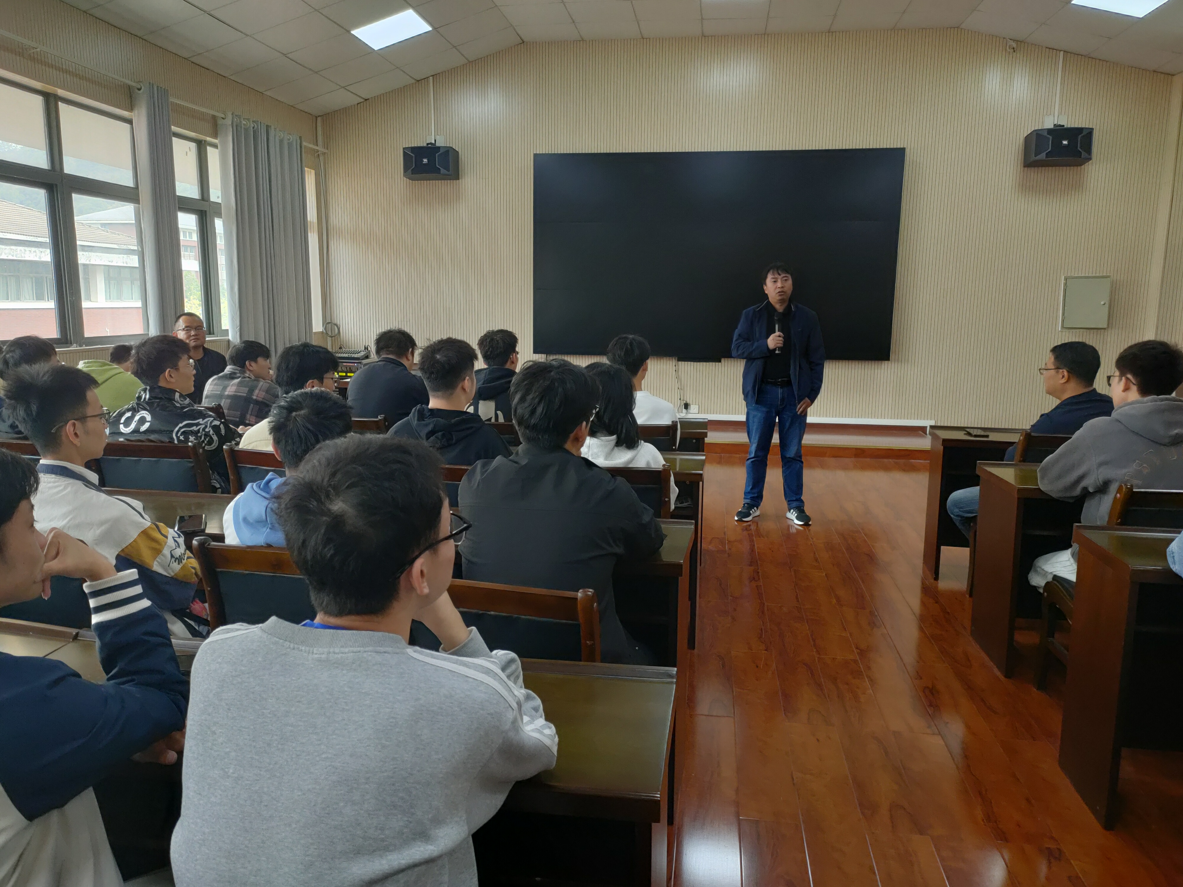 谭健在会上给同学们分享了几位公司优秀员工的故事,鼓励同学们积极面对求职中遇到的困难和挫折,到实践中长才干,增本领。同时对同学们开展了安全教育和纪律教育,再次强调了交通安全、寝室防火、防范网络电信诈骗等事项,要求大家严格遵守校纪校规,平安顺利毕业。现场还对老员工入伍政策做了介绍,鼓励符合条件的同学积极报名入伍。