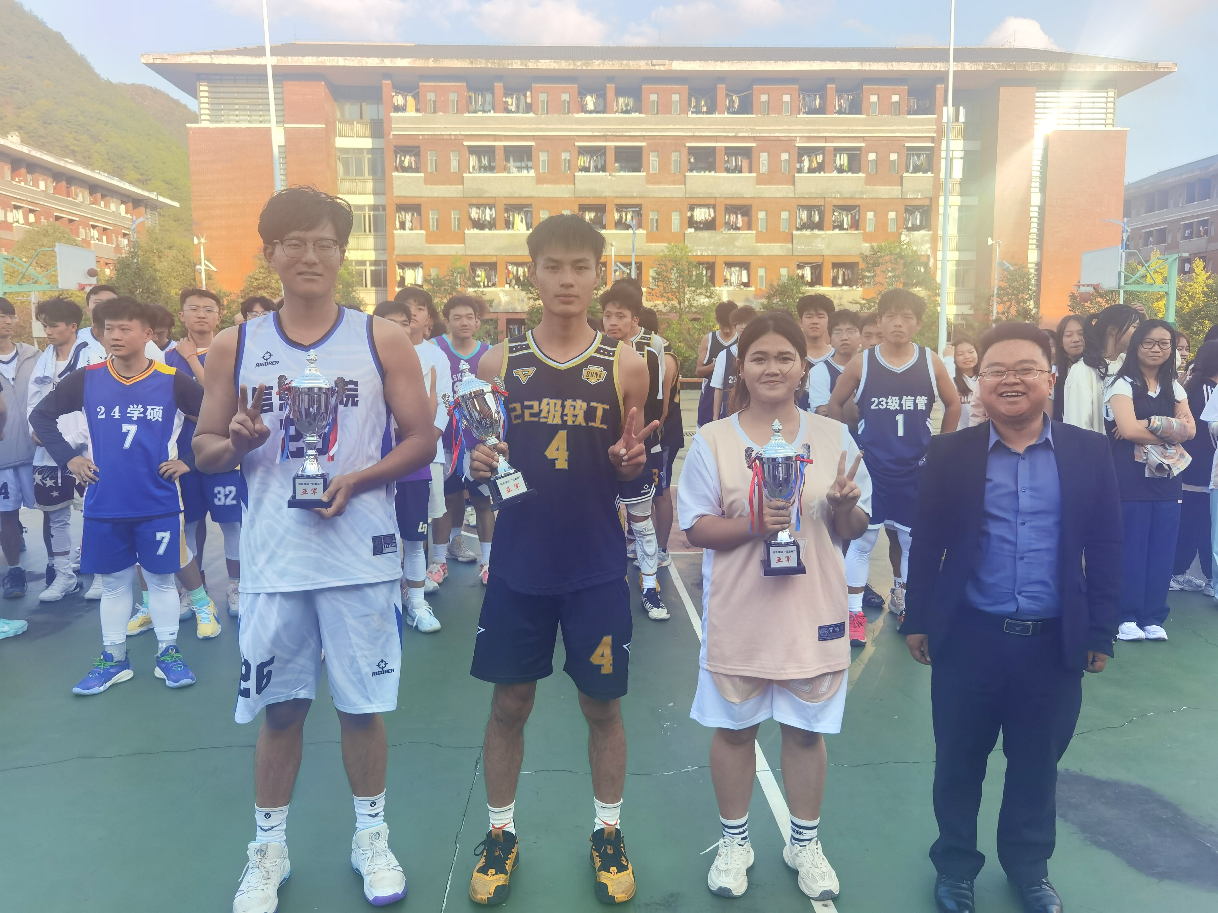 本次比赛历时一个多月,各参赛团队在赛场上挥洒汗水,奋勇争先,为荣誉而战,为我们呈现了一场场精彩纷呈的比赛,观众席上,同学们的加油声、呐喊声此起彼伏,为比赛增添了无尽的激情和动力。经过激烈角逐,最终2024级计算机科学与技术班(研究生)团队、2023级信息管理与信息系统2班团队、2023级软工计科班团队分别荣获男子组和女子组冠军。